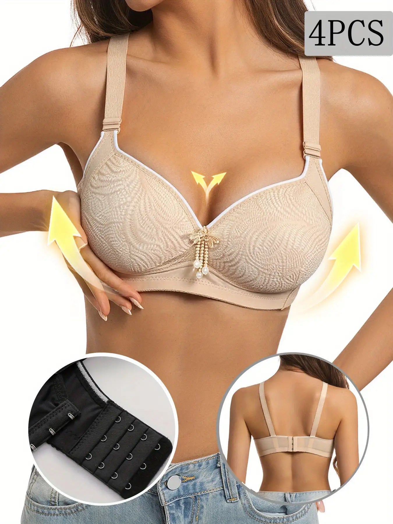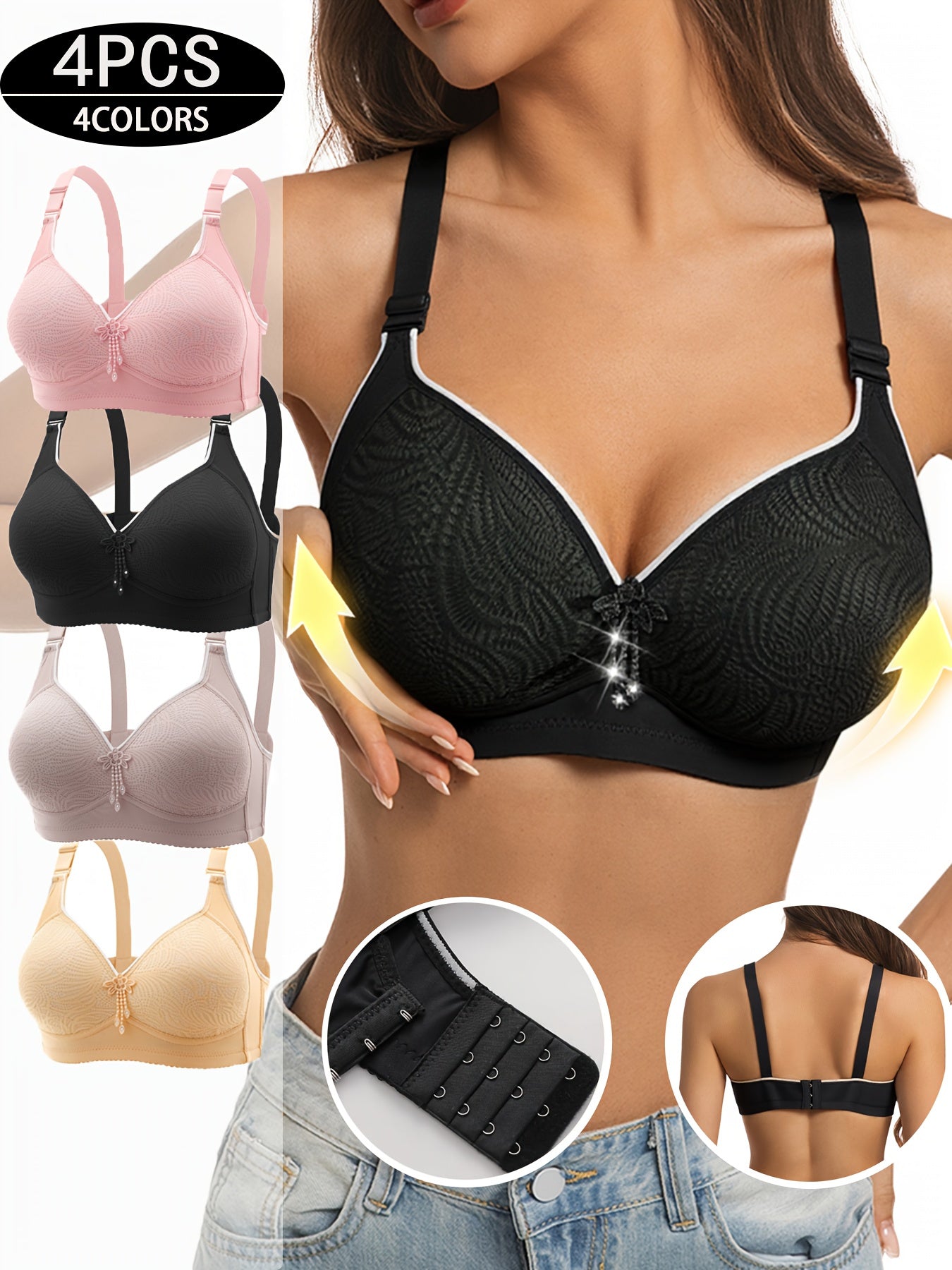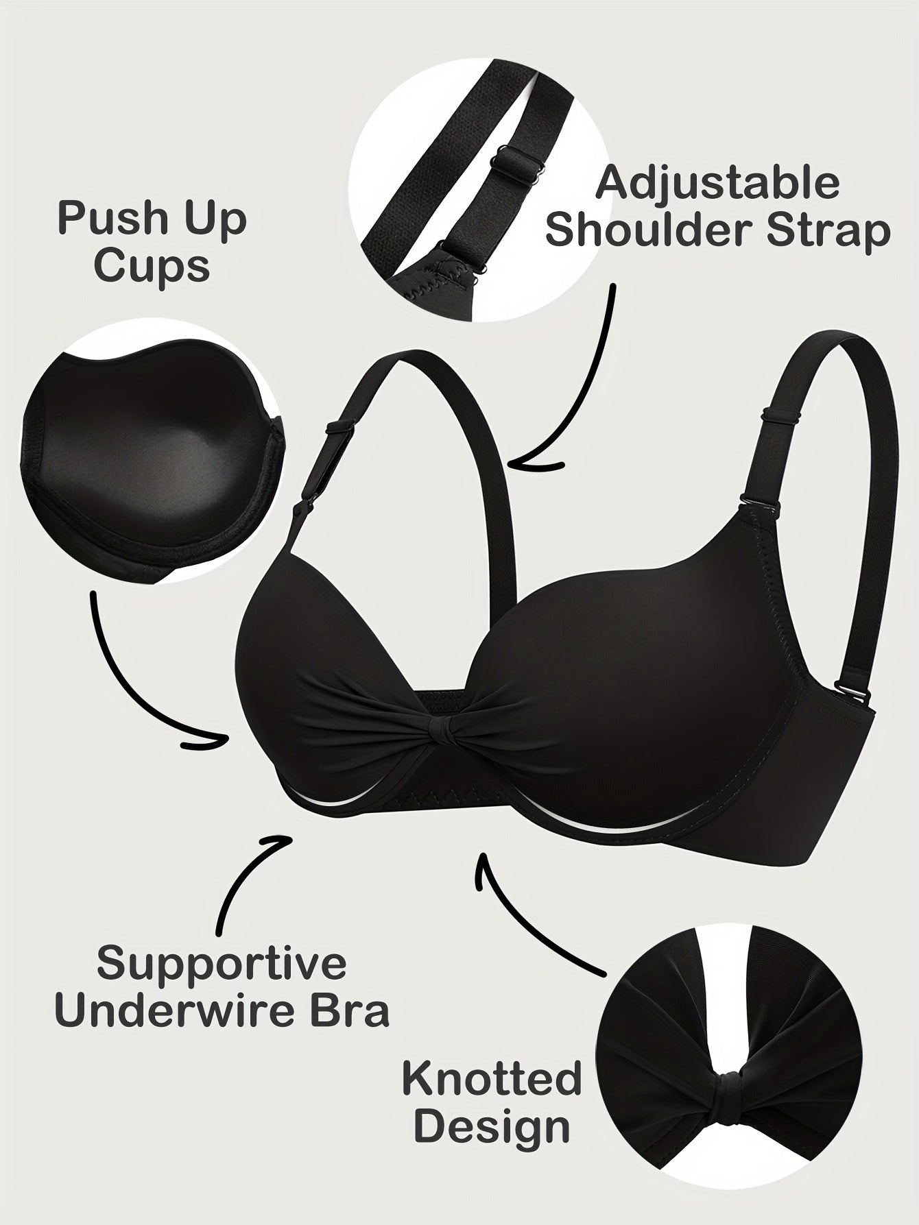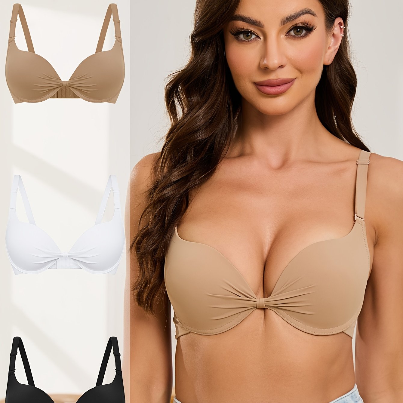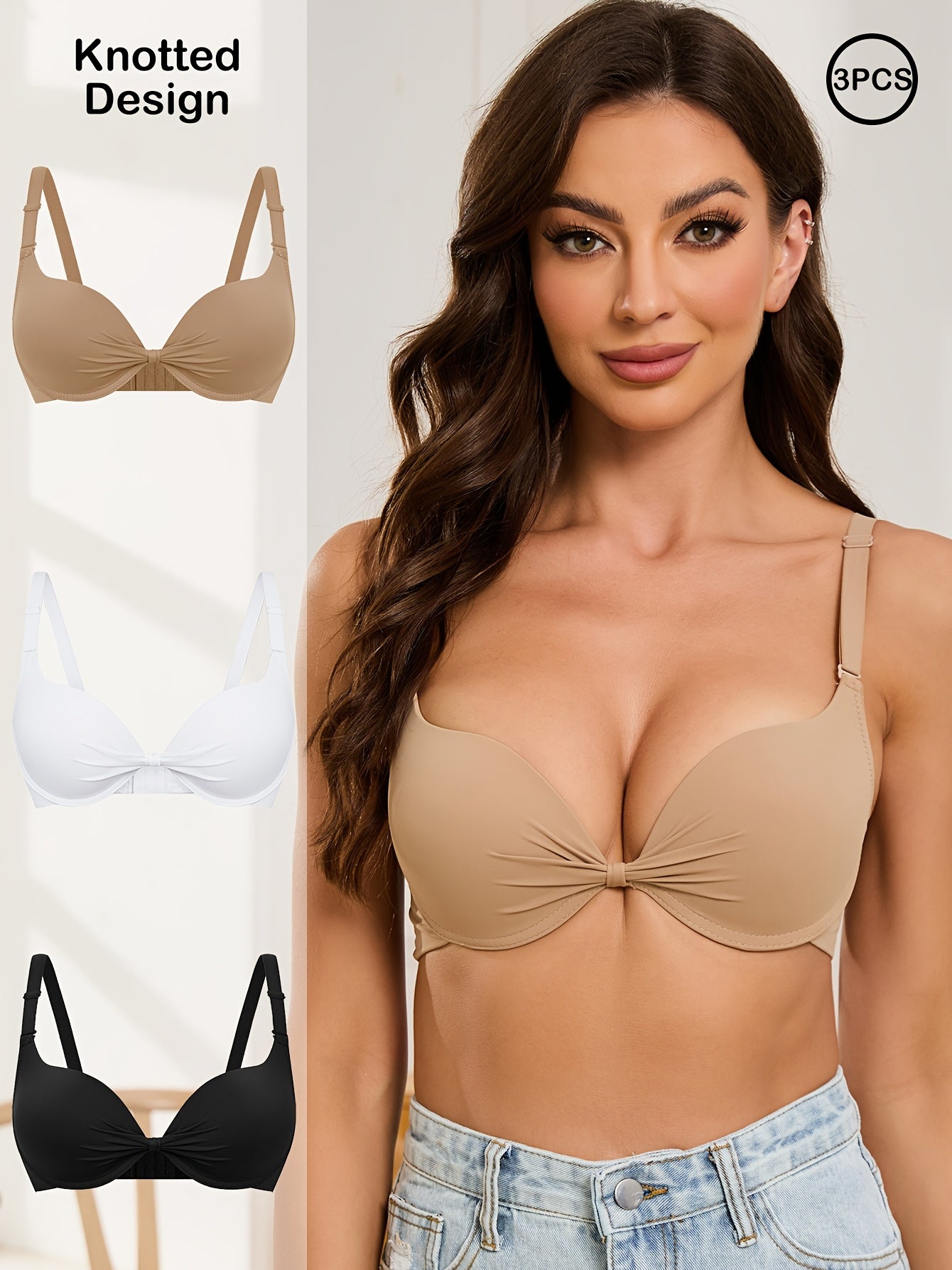 3pcs Knotted Push Up Bras For Women, Everyday Bras For Party, Sexy T-Shirt Bra